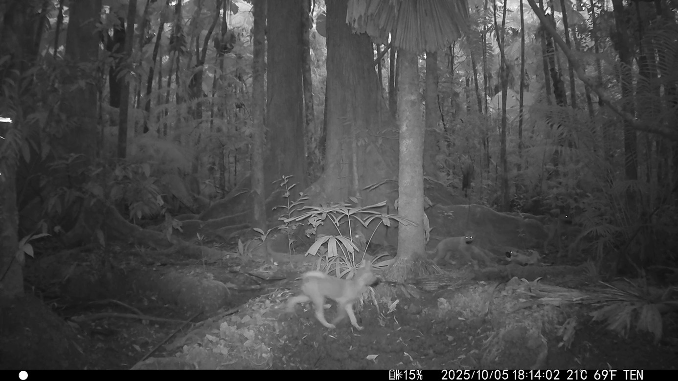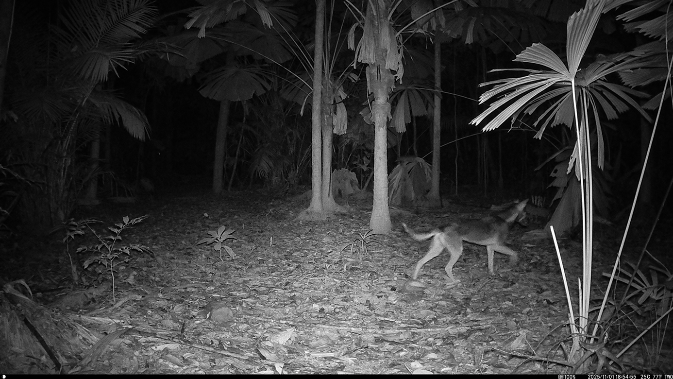 Camera Traps - October 2025 accrued 55-cassowaries, 43-dingoes and 56-feral pigs. Against the cumulative monthly average, cassowary numbers fell by 43%, dingo numbers increased by 2% and feral-pig numbers plummeted by 71%. Against October
