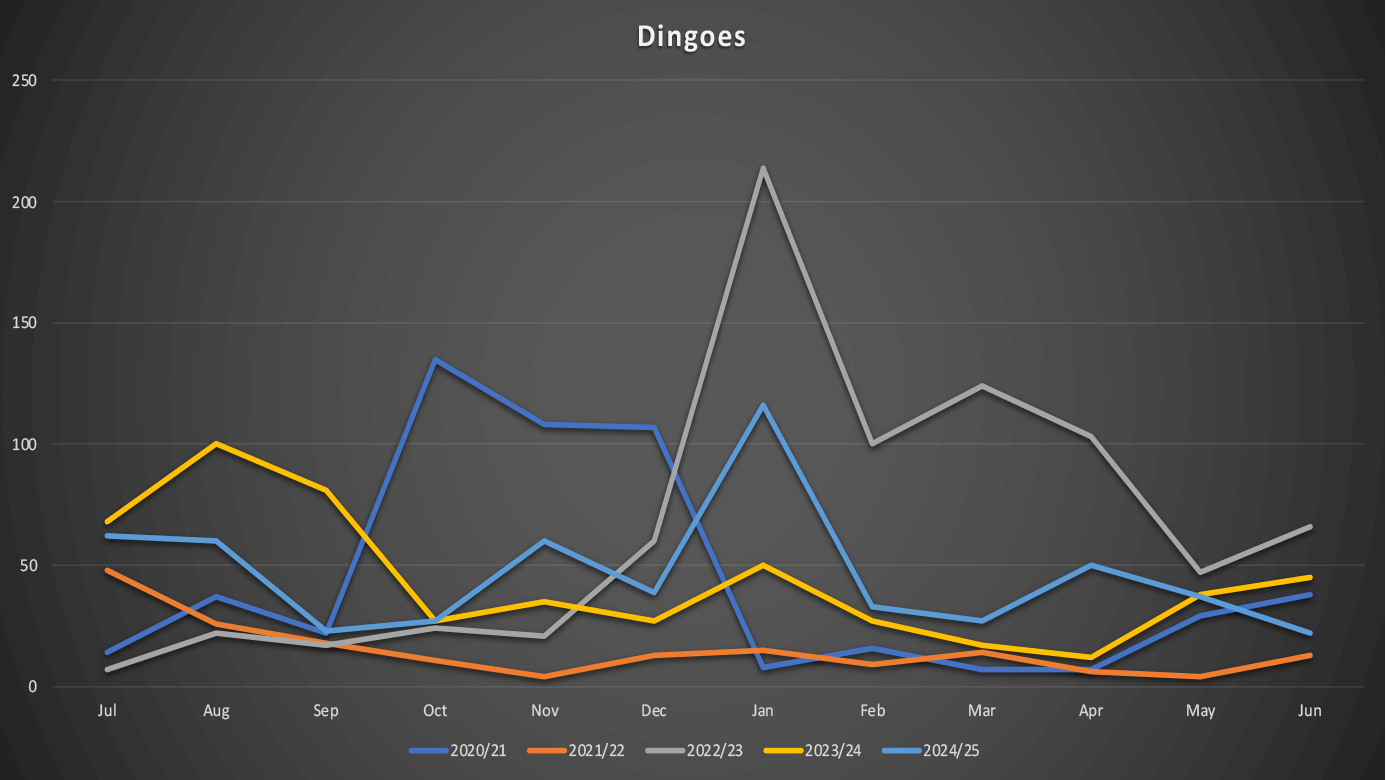 Overlay of dingo sightings between 2020 – 2025: