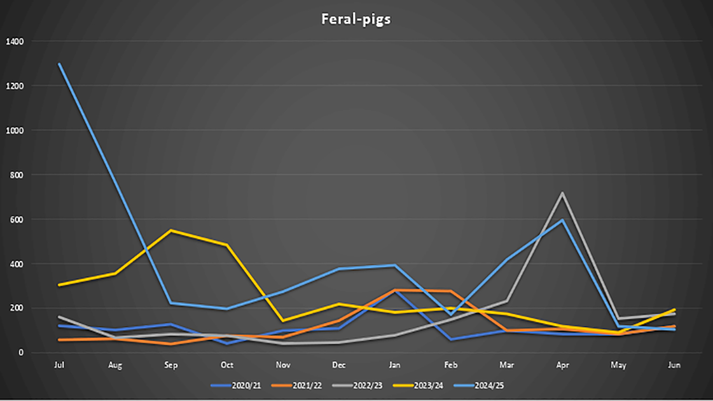 Overlay of feral-pig sightings between 2020 – 2025: