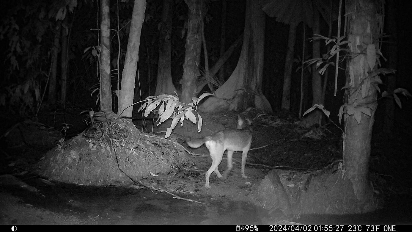 Camera Traps – April 2024 accrued 59-cassowary sightings, 12-dingoes and 110-feral pigs. Against the cumulative monthly average, cassowary numbers fell by 45%, dingoes decreased by 69% and feral-pig numbers also dropped by 30%. Against April 2023, cassowaries were 65% fewer, dingo numbers dropped by 88% and feral-pigs also plummeted by 85%.