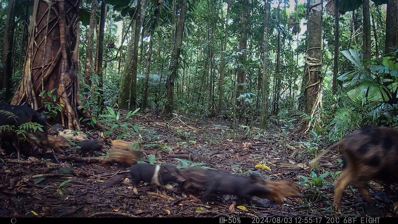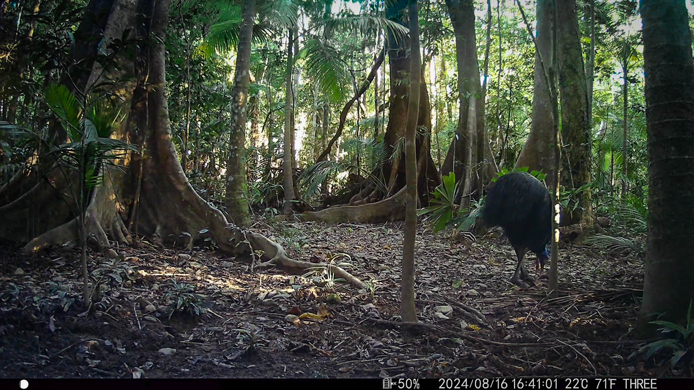 Camera Traps – August 2024 accrued 66-cassowary sightings, 60-dingoes and 765-feral pigs. Against the cumulative monthly average, cassowary numbers fell by 42%, whilst dingo-sightings rose by 50% and feral-pig numbers soared by 308%. Against August 2023, cassowary sightings were 10% fewer, dingo numbers also fell by 40%, whereas feral-pigs numbers exploded by a whopping 567%!