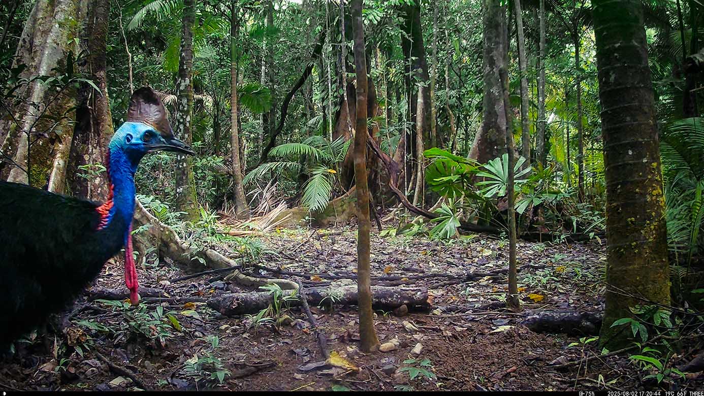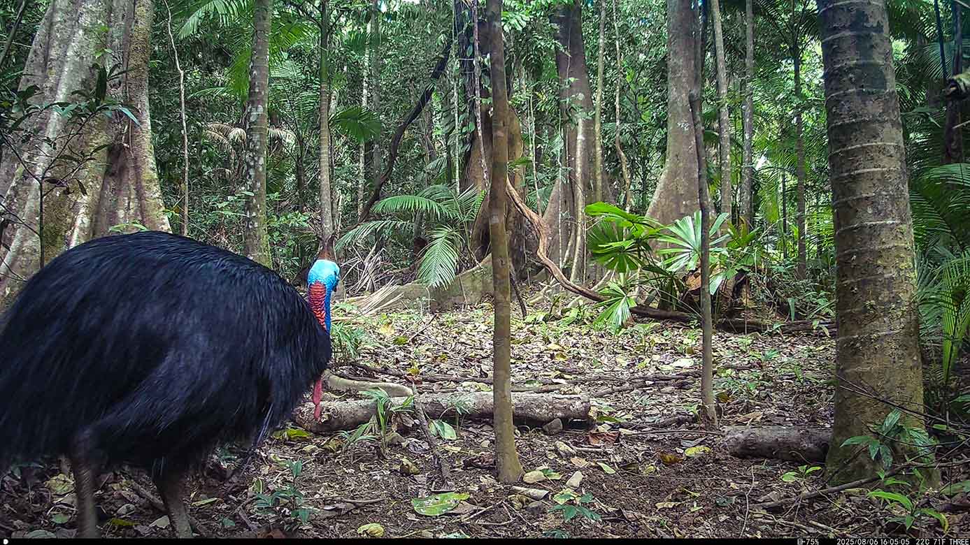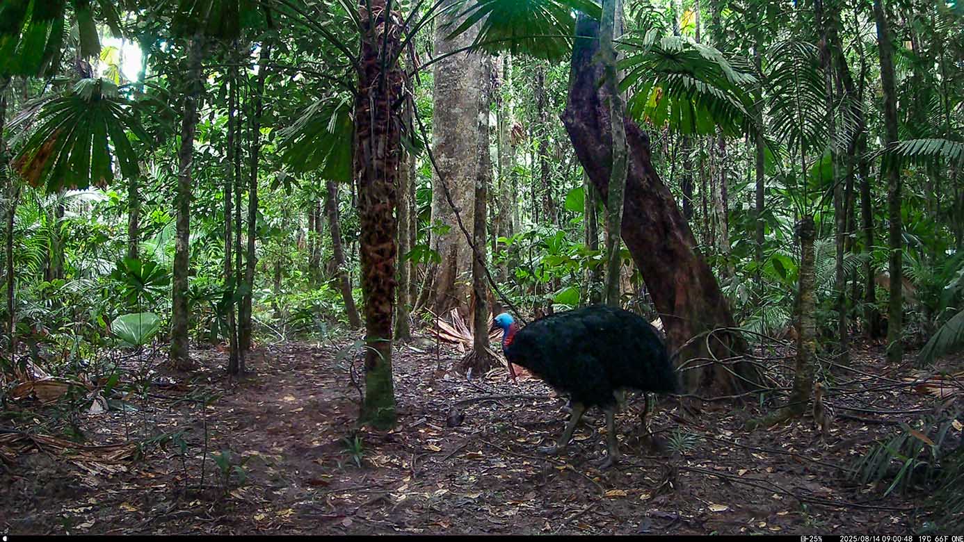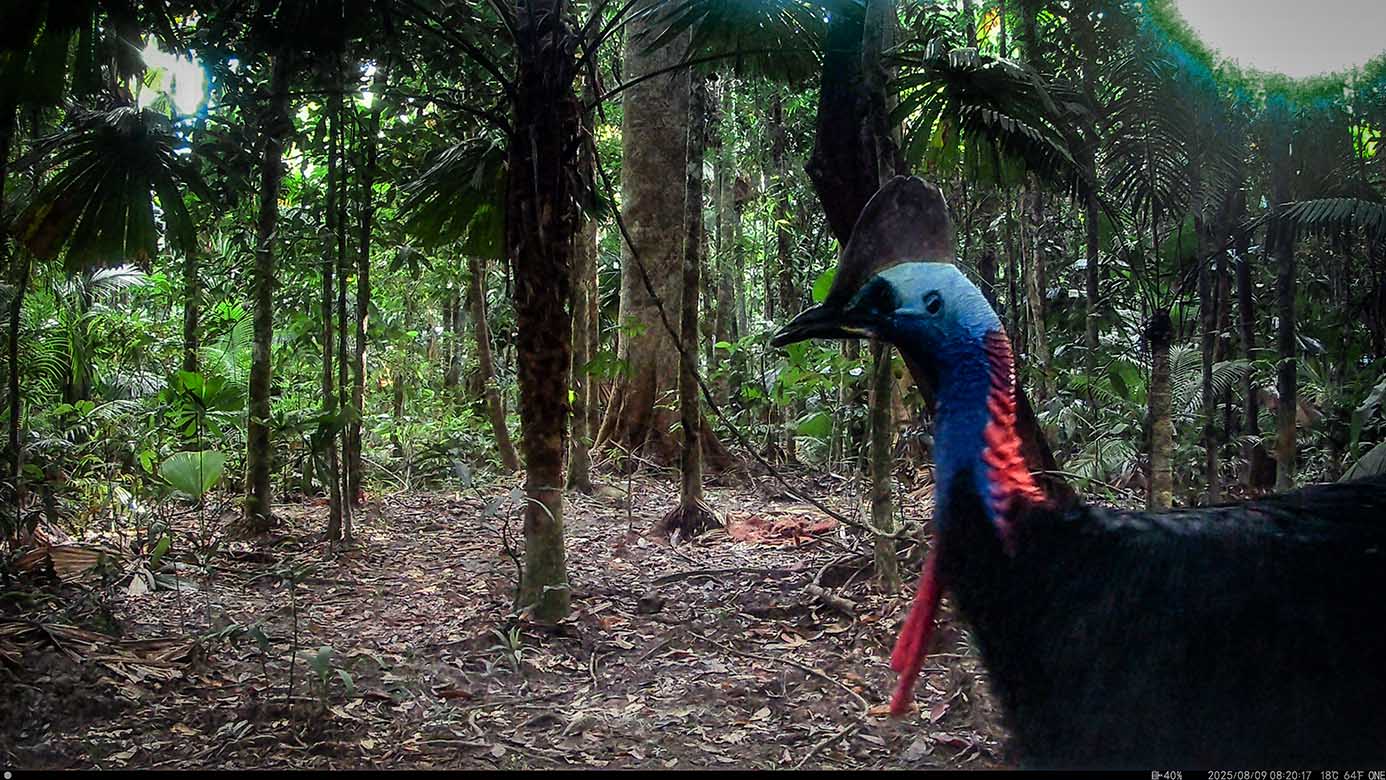 Camera Traps – August 2025 accrued 48-cassowary sightings, 42-dingoes and 66-feral pigs. Against the cumulative monthly average, cassowary numbers fell by 54%, dingo-sightings dropped by 3% and feral-pig numbers collapsed by 67%. Against August 2024, cassowary sightings were 27% fewer, dingo numbers also fell by 27%, whilst feral-pigs plummeted by 67%!