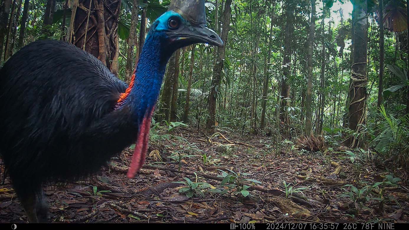 Camera Traps – December 2024 accrued 84-cassowaries, 39-dingoes and 378-feral pigs. Against the cumulative monthly average, cassowary numbers fell by 16%, dingoes dropped by 2%, whilst feral-pig numbers soared by 196%. Against December 2023, cassowary numbers fell by 31%, dingo sightings increased by 144% and feral-pig numbers increased by 173%.