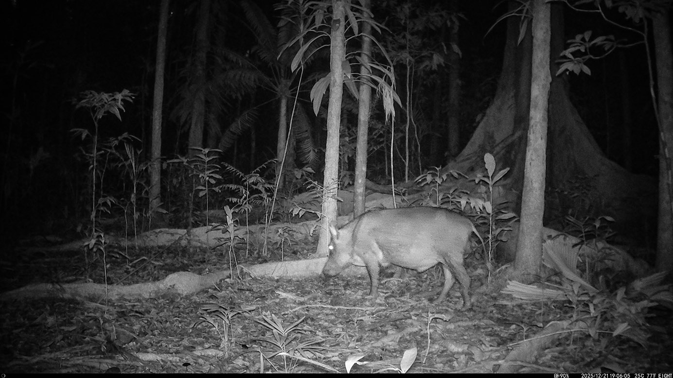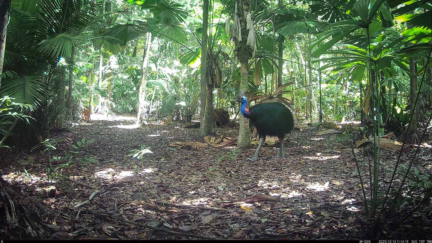 Camera Traps – December 2025 accrued 23-cassowary sightings, 23-dingoes and 122-feral pigs. Against the cumulative monthly average, cassowary numbers fell by 77%, dingoes dropped by 43%, whilst feral-pig numbers also diminished by 36%. Against December 20234, cassowary numbers fell by 73%, dingo sightings dropped by 41% and feral-pig numbers diminished by 68%.