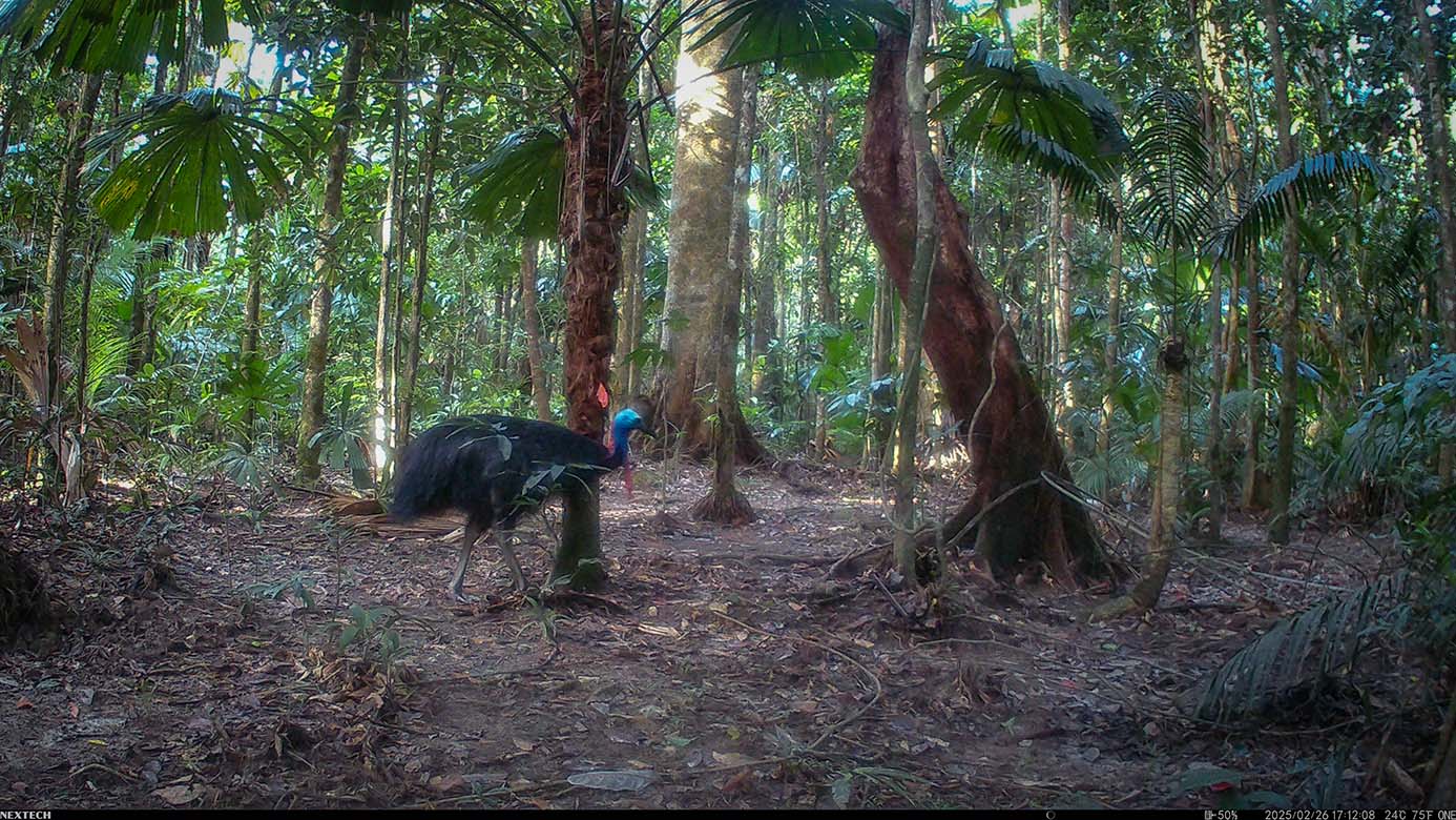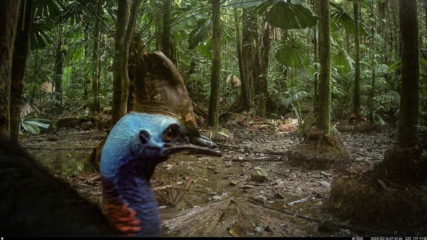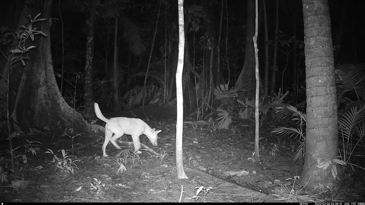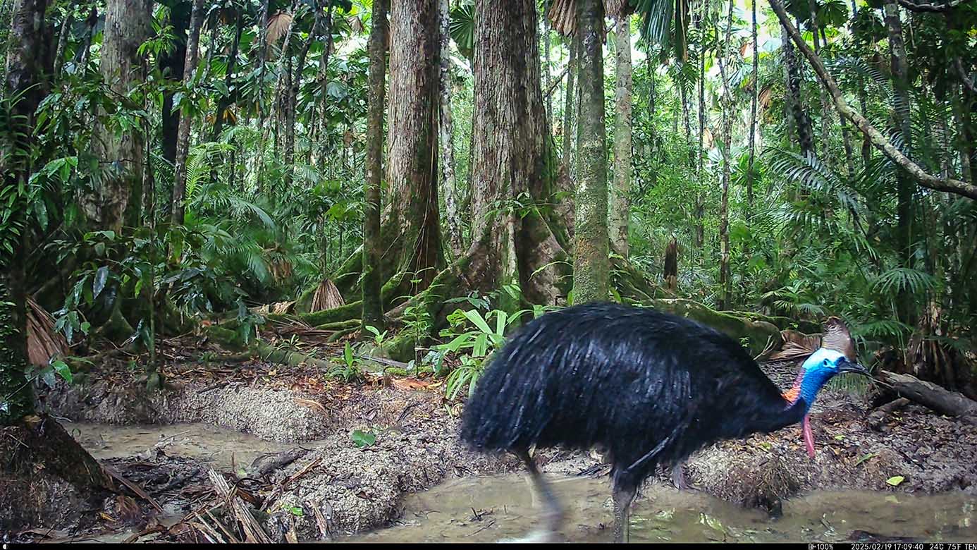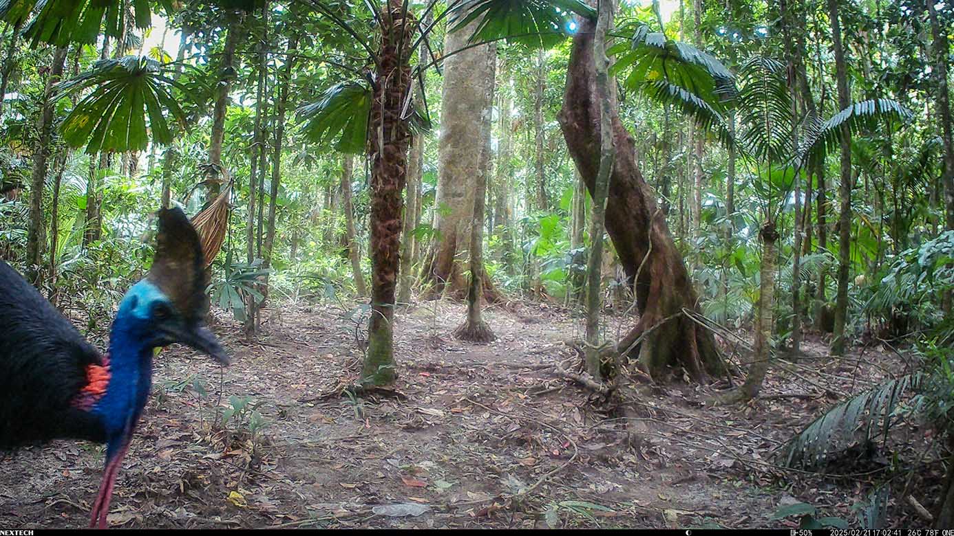 Camera Traps – February 2025 accrued 194-cassowary sightings, 33-dingoes and 173-feral pigs. Against the cumulative monthly average, cassowary numbers rose by 89%, dingoes decreased by 19% and feral-pig numbers also fell by 12%. Against February 2024, cassowary sightings rose by 64%, dingo increased by 22%, whereas feral-pigs fell by 13%.