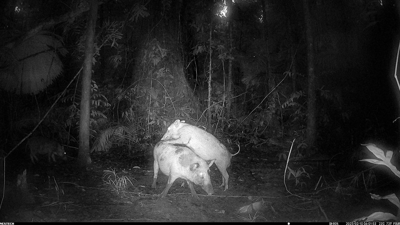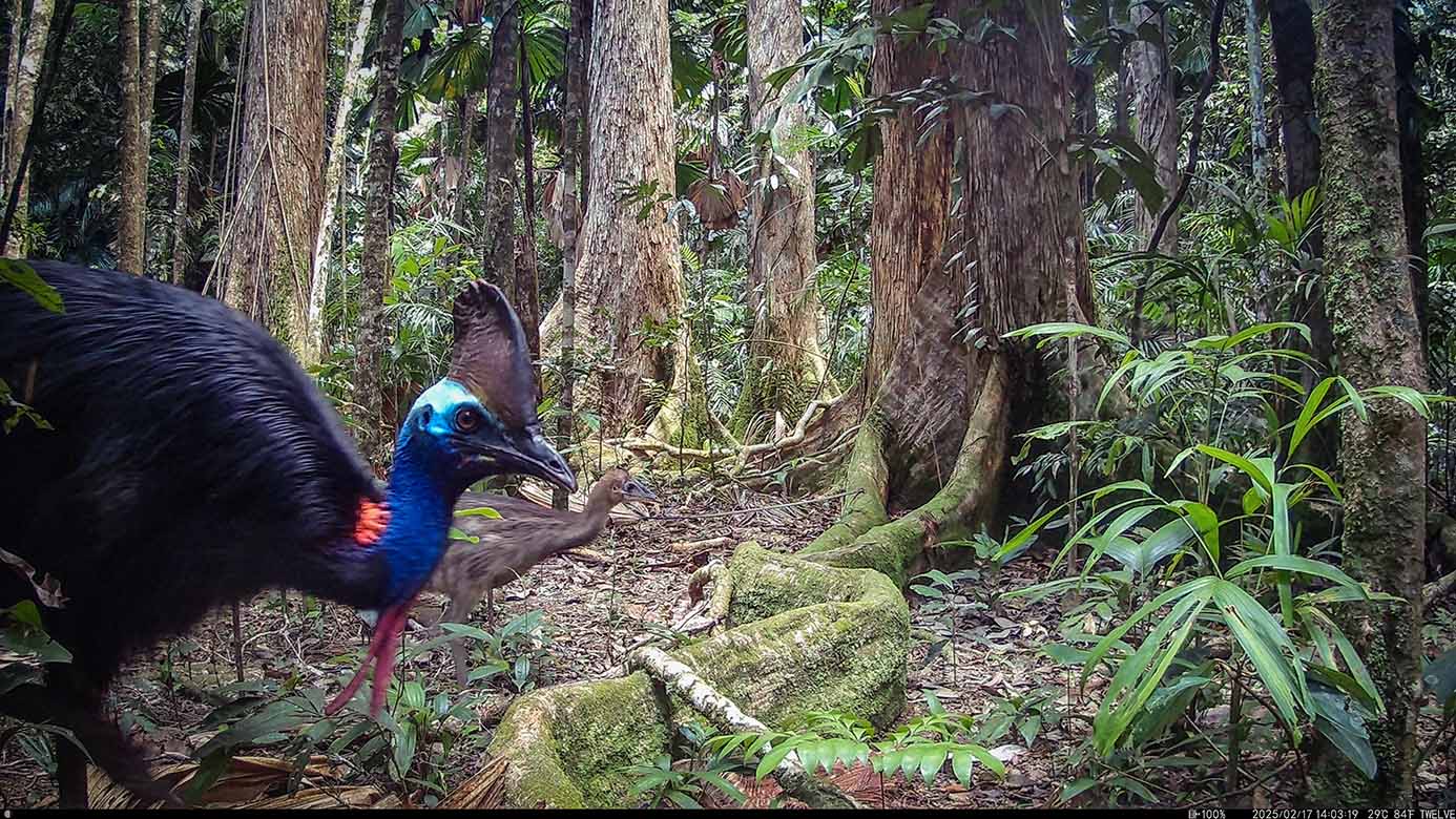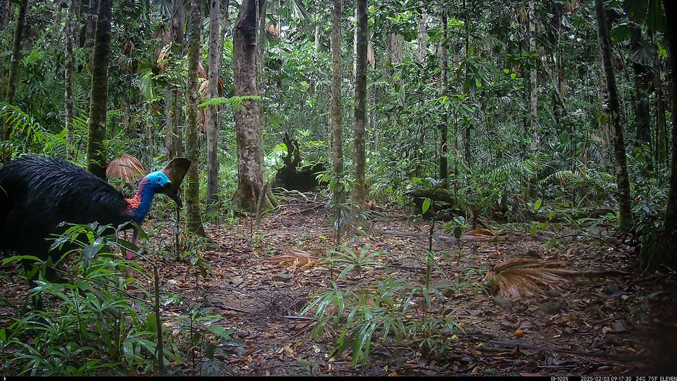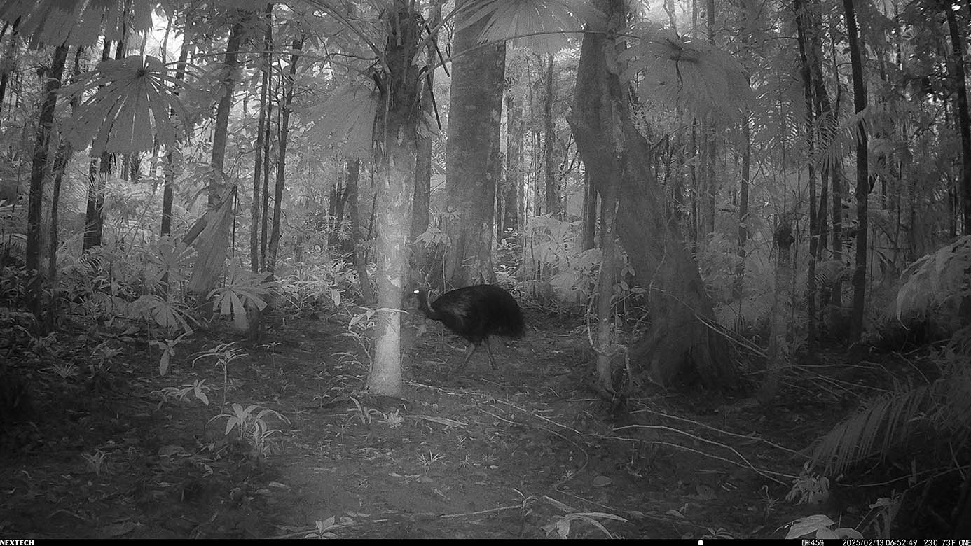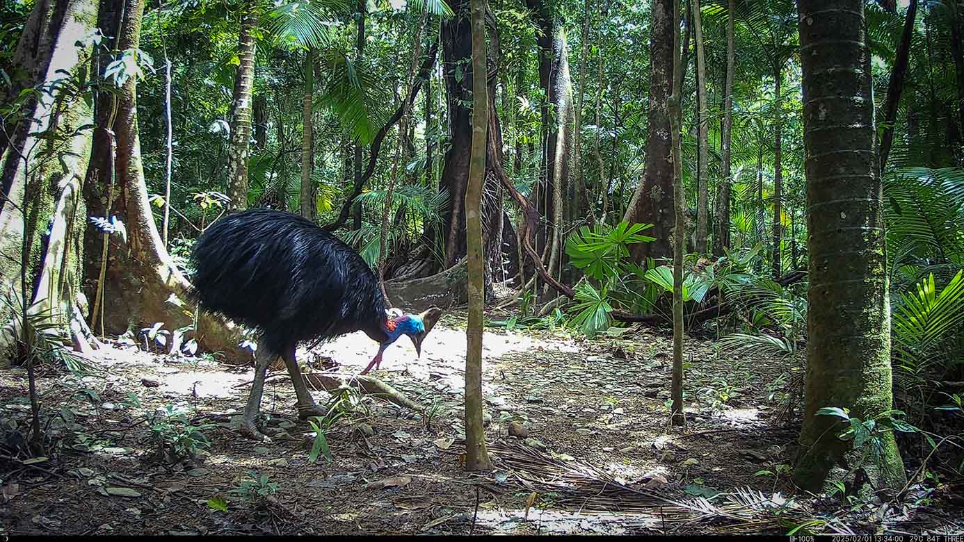 Camera Traps – February 2025 accrued 194-cassowary sightings, 33-dingoes and 173-feral pigs. Against the cumulative monthly average, cassowary numbers rose by 89%, dingoes decreased by 19% and feral-pig numbers also fell by 12%. Against February 2024, cassowary sightings rose by 64%, dingo increased by 22%, whereas feral-pigs fell by 13%.