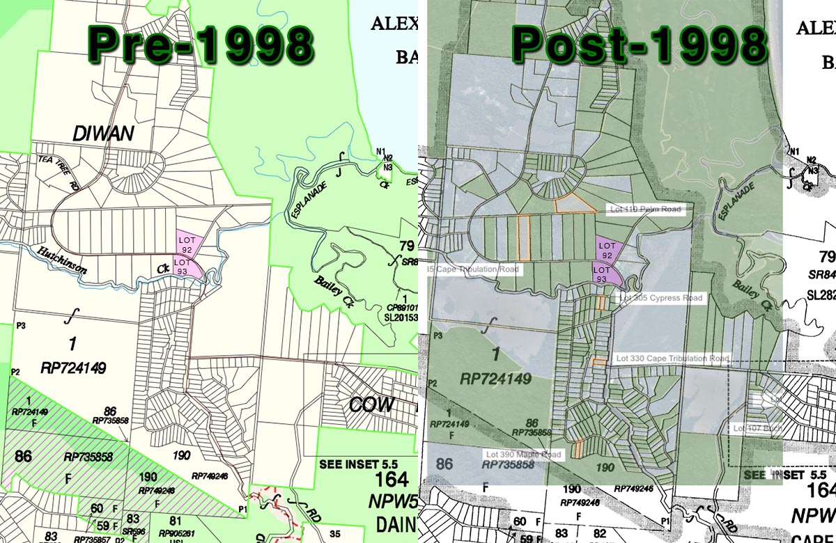 Asserting that Lot 92 Cape Tribulation Road now forms a safe and secure corridor for endangered cassowaries linking neighboring Lot 93 Cape Tribulation Road with the Daintree National Park / Wet Tropics World Heritage Area, is contradicted by the fact that Lots 92 and 93 are permanently separated by the primary thoroughfare of Cape Tribulation Road. Also, the only portion of Daintree National Park that either property adjoins was previously held under freehold-title, until acquired by the State in the latter half of the nineteen-nineties, under the similarly uncharitable, covetous, usurpatory and legally-questionable Daintree Rescue Package (DRP), which pejoratively and prejudicially stripped people and communities from freehold properties within the Daintree Rainforest, as if it were synonymous with environmental protection.