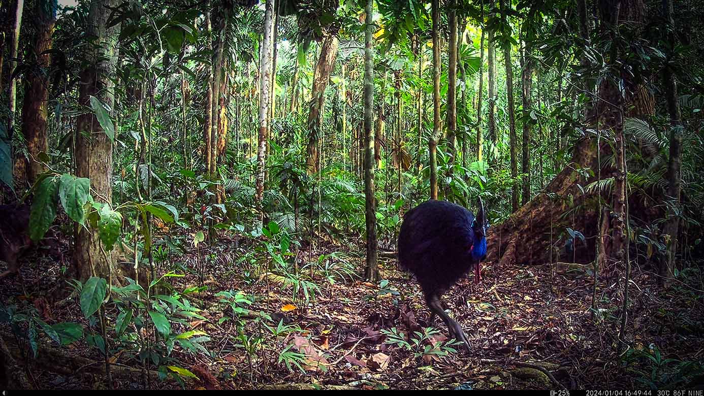 Prudy took the grand cassowary matriarch role upon Big Bertha’s retirement and relocation into non-competing territory. Quite concerningly, we have not sighted Prudy since Cyclone Jasper on 13th December 2023. Both Crinkle Cut’s and Taiga’s two remaining chicks, Tulli & TK & Larry & Curley (respectively), were lost to the same cyclone and its ensuing deluge and landslides. Whilst little chicks are far more vulnerable to the devastation of flooding, a big adult bird like Prudy is not immune to a multitude of possible dangers.