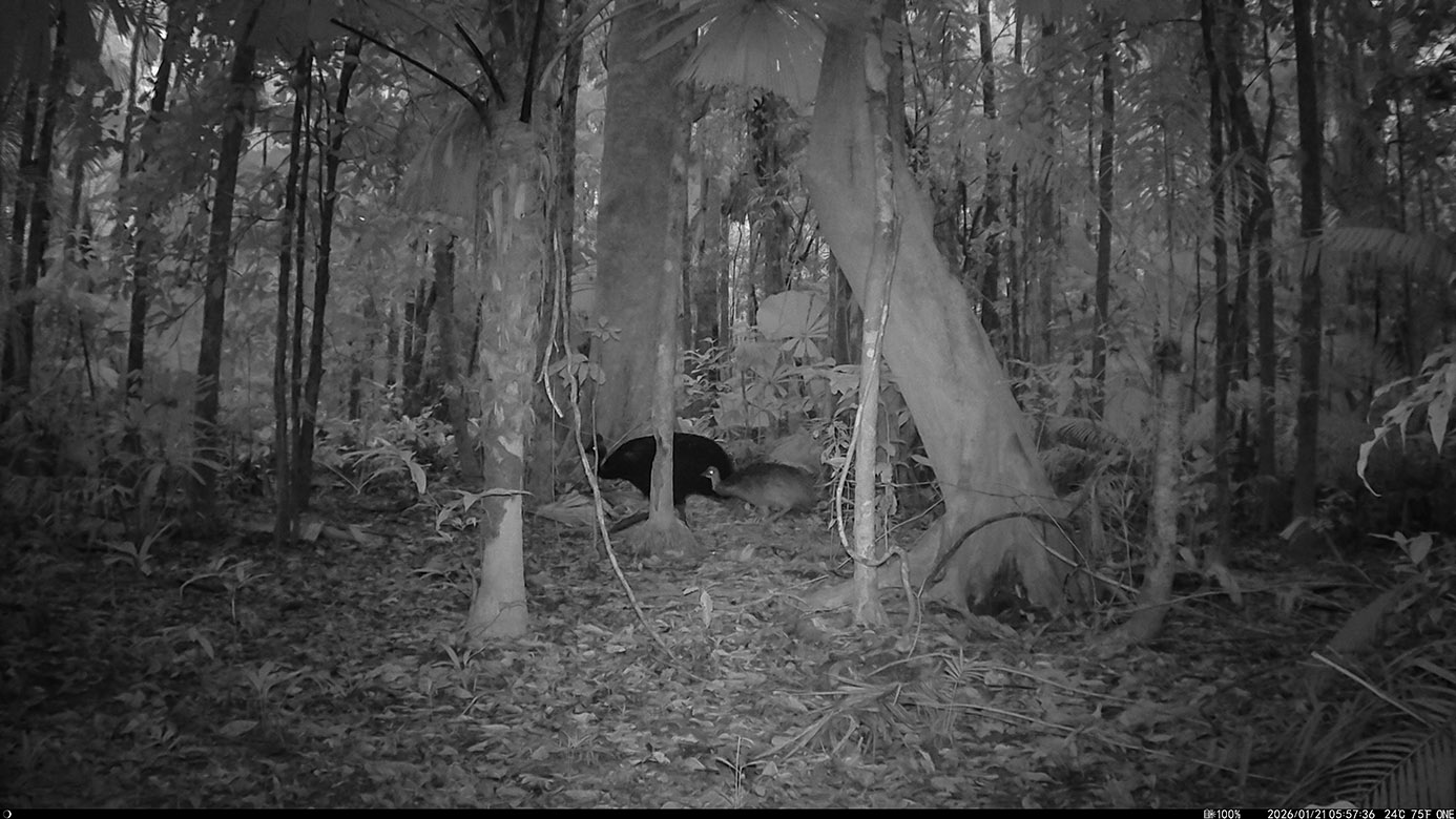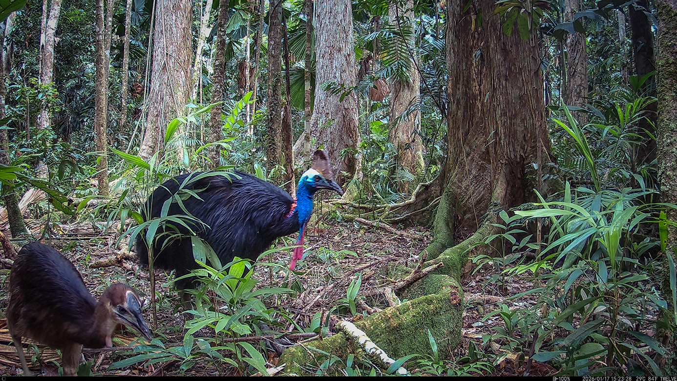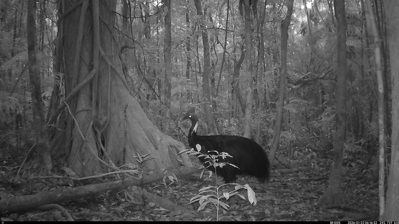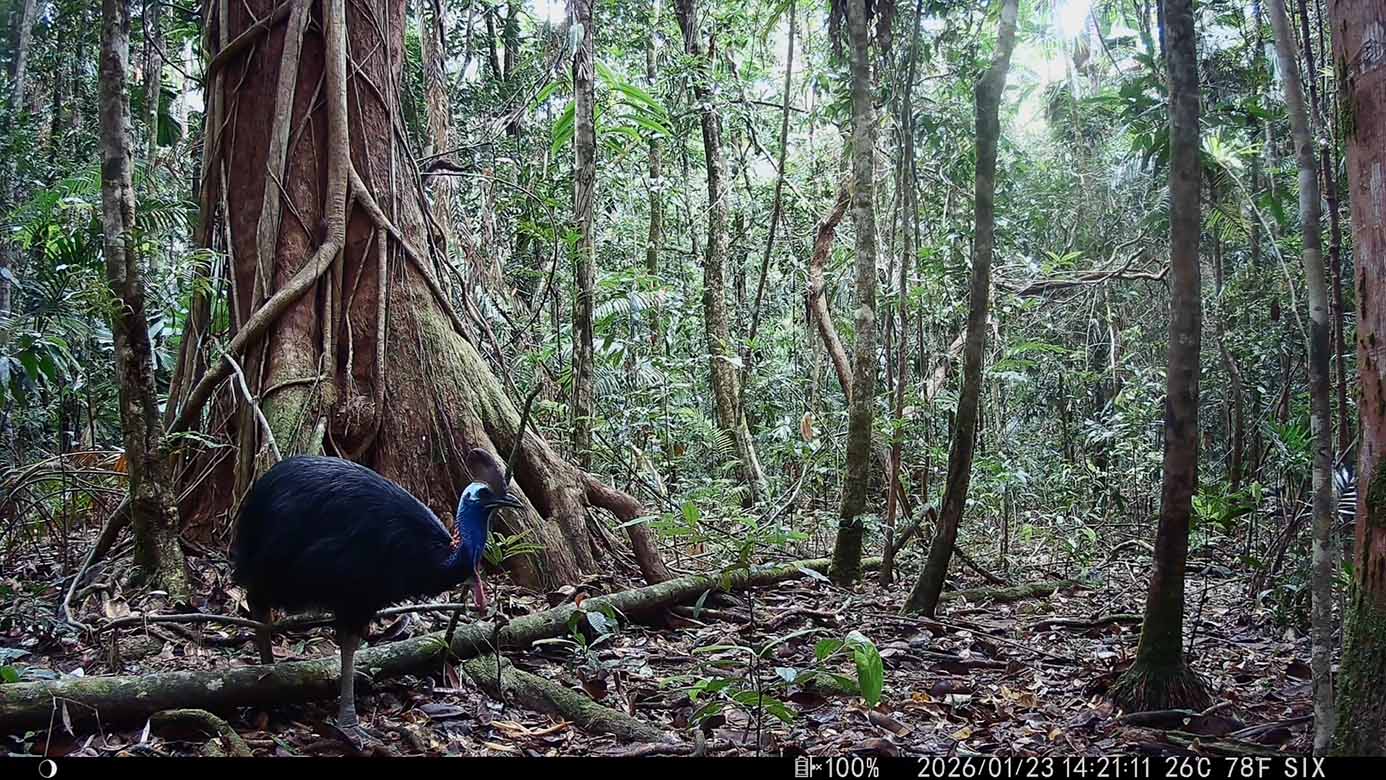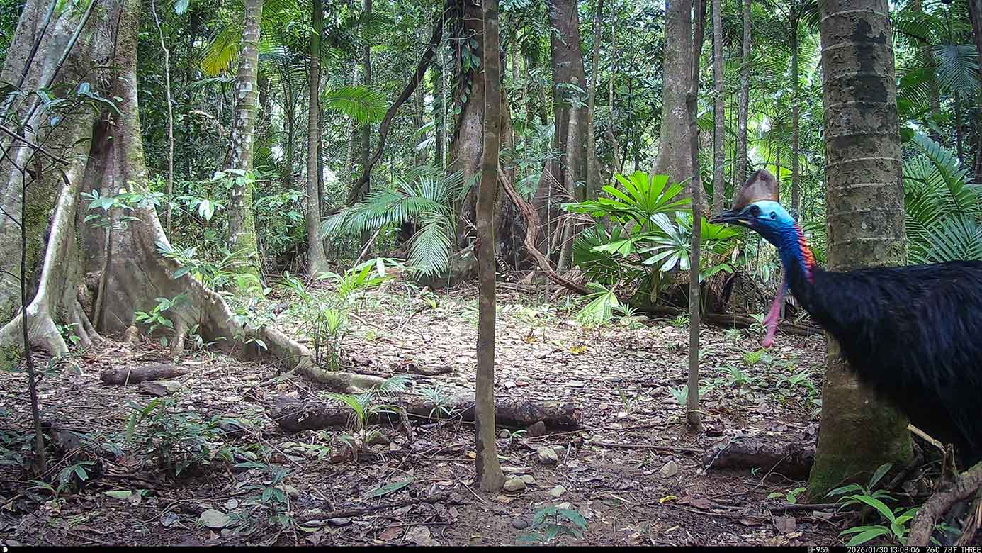 Camera Traps – January 2026 accrued 238-cassowary sightings, 19-dingoes and 295-feral pigs. Against cumulative monthly averages, cassowary numbers increased by 131%, dingoes fell by 54% and feral-pigs increased by 53%. Against January 2025, cassowary numbers rose by 79%, dingoes decreased by 84% and feral-pigs rose by 25%.