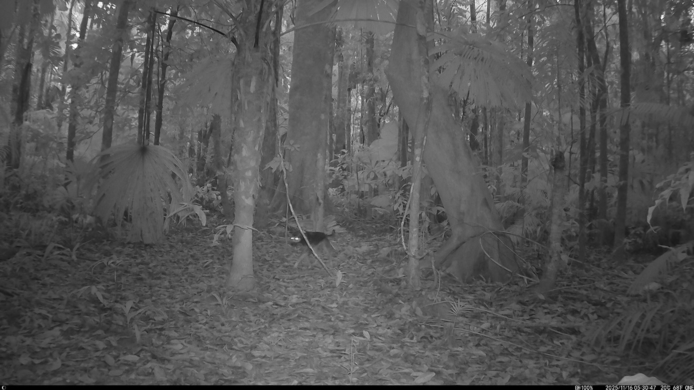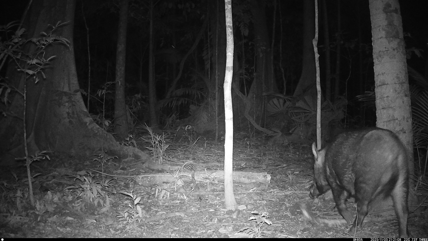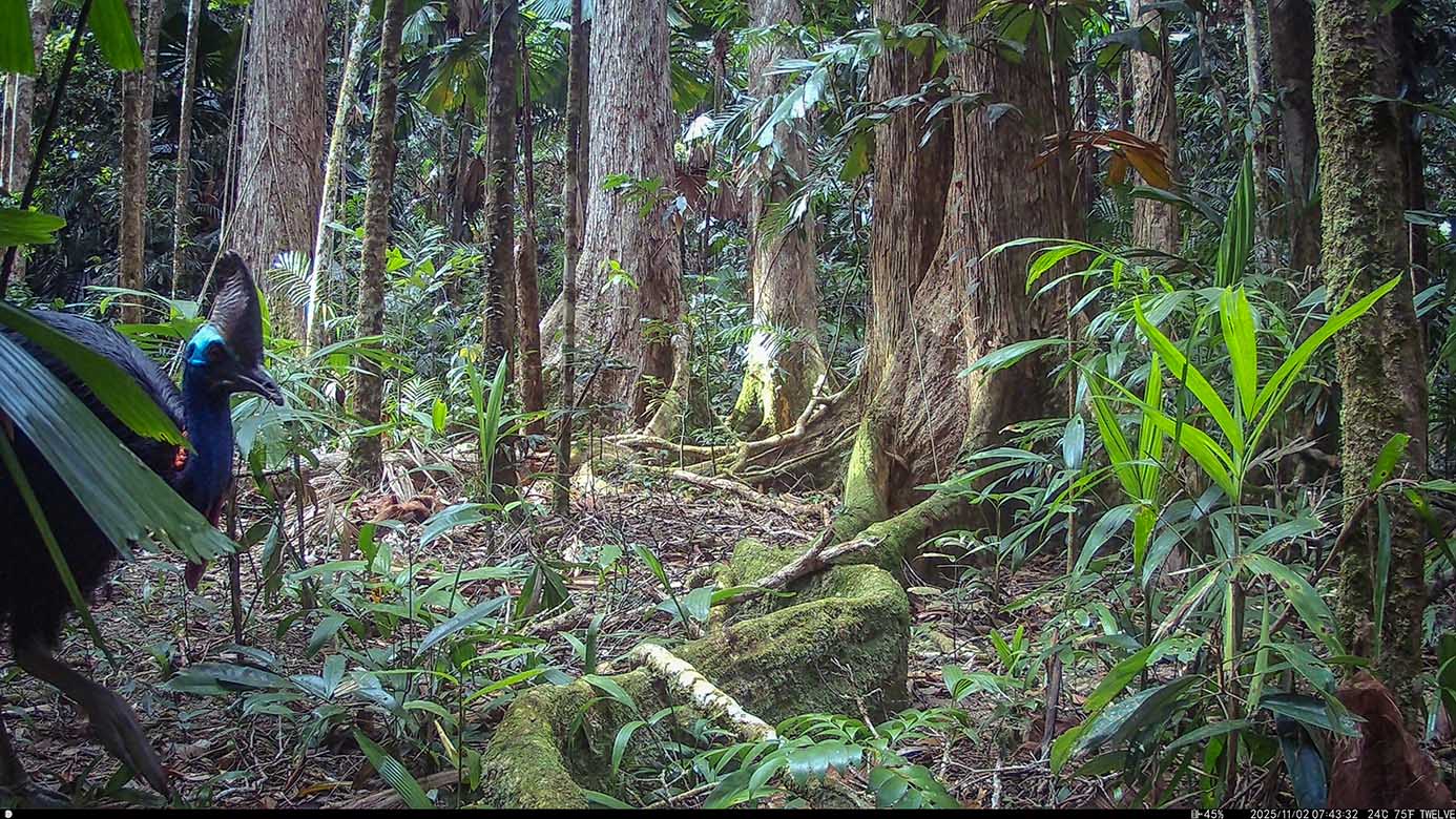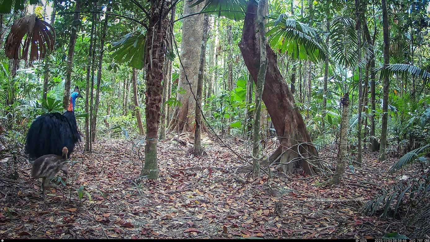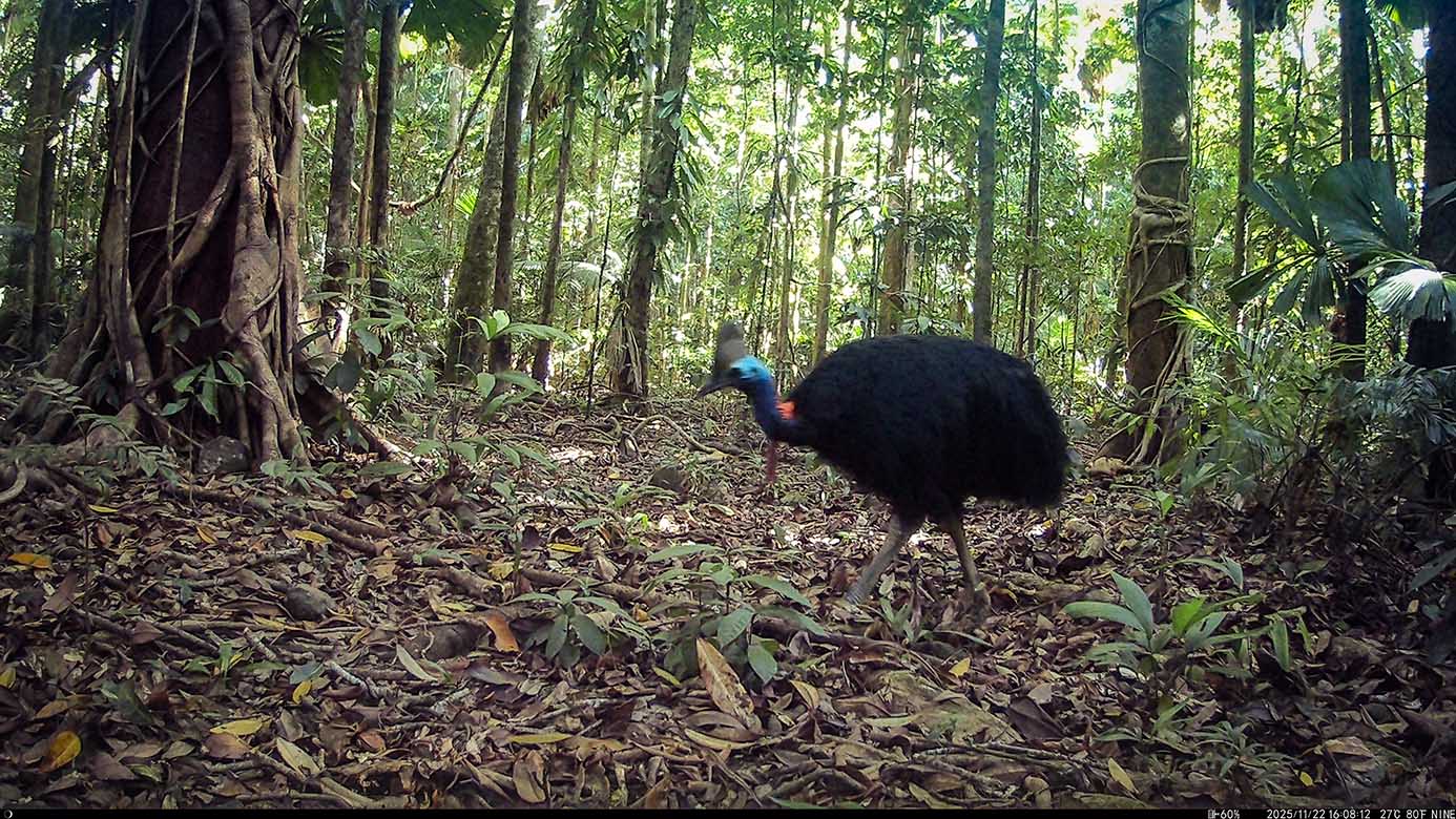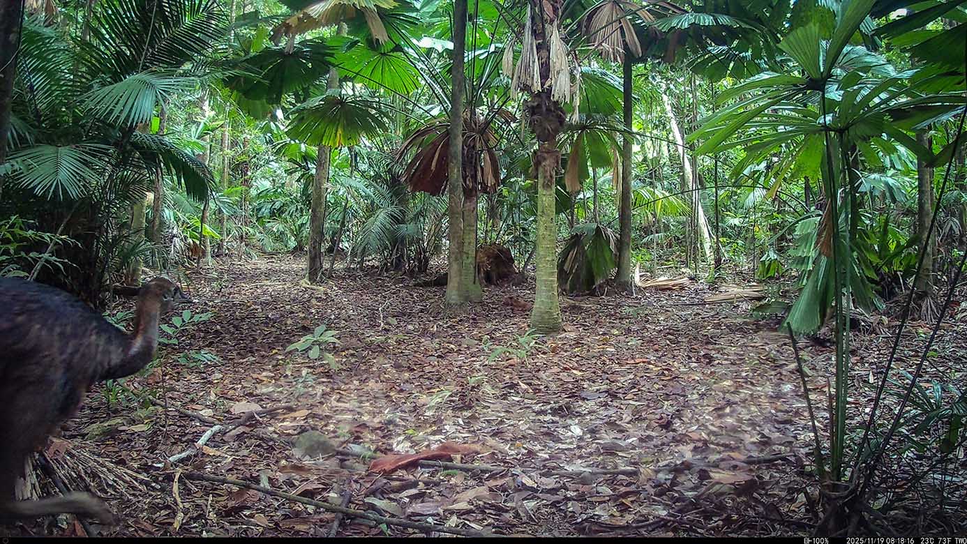 Camera Traps – November 2025 accrued 25-cassowaries, 17-dingoes and 16-feral pigs. Technical problems plagued the month’s tally, with only half of the 12-cameras delivering any data. Against this technological failing, cumulative monthly averages fell across the board, with cassowary sightings 75% down, dingoes dropped by 59% and feral-pig numbers plummeted by 92%. Against November 2024, cassowary sightings dropped by 52%, dingo numbers fell by 72% and feral-pig sightings also decreased by 94%.
