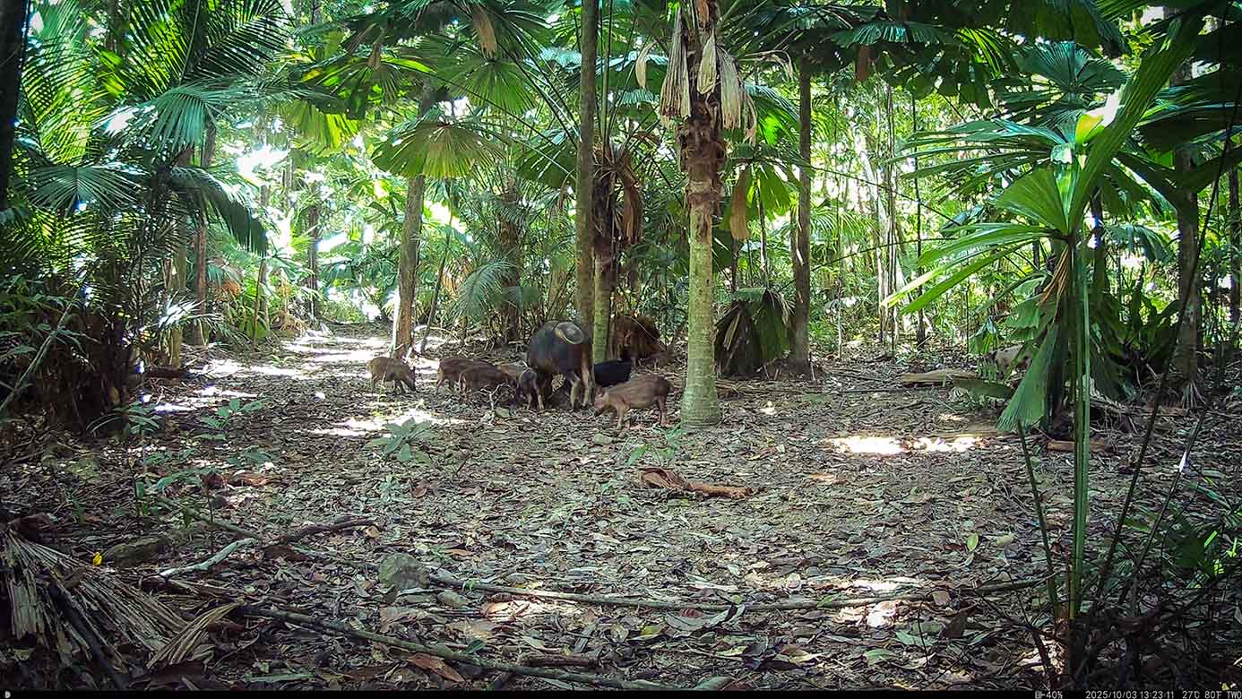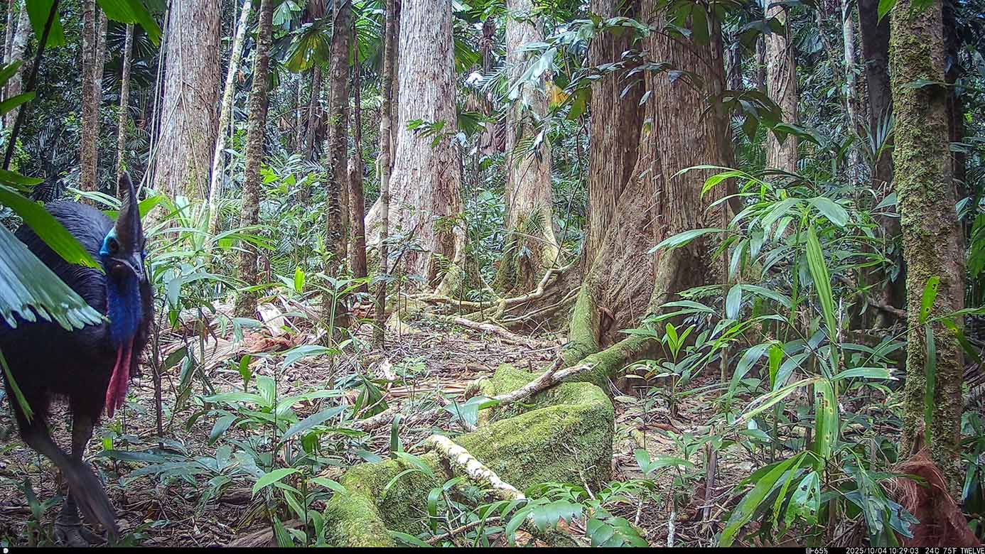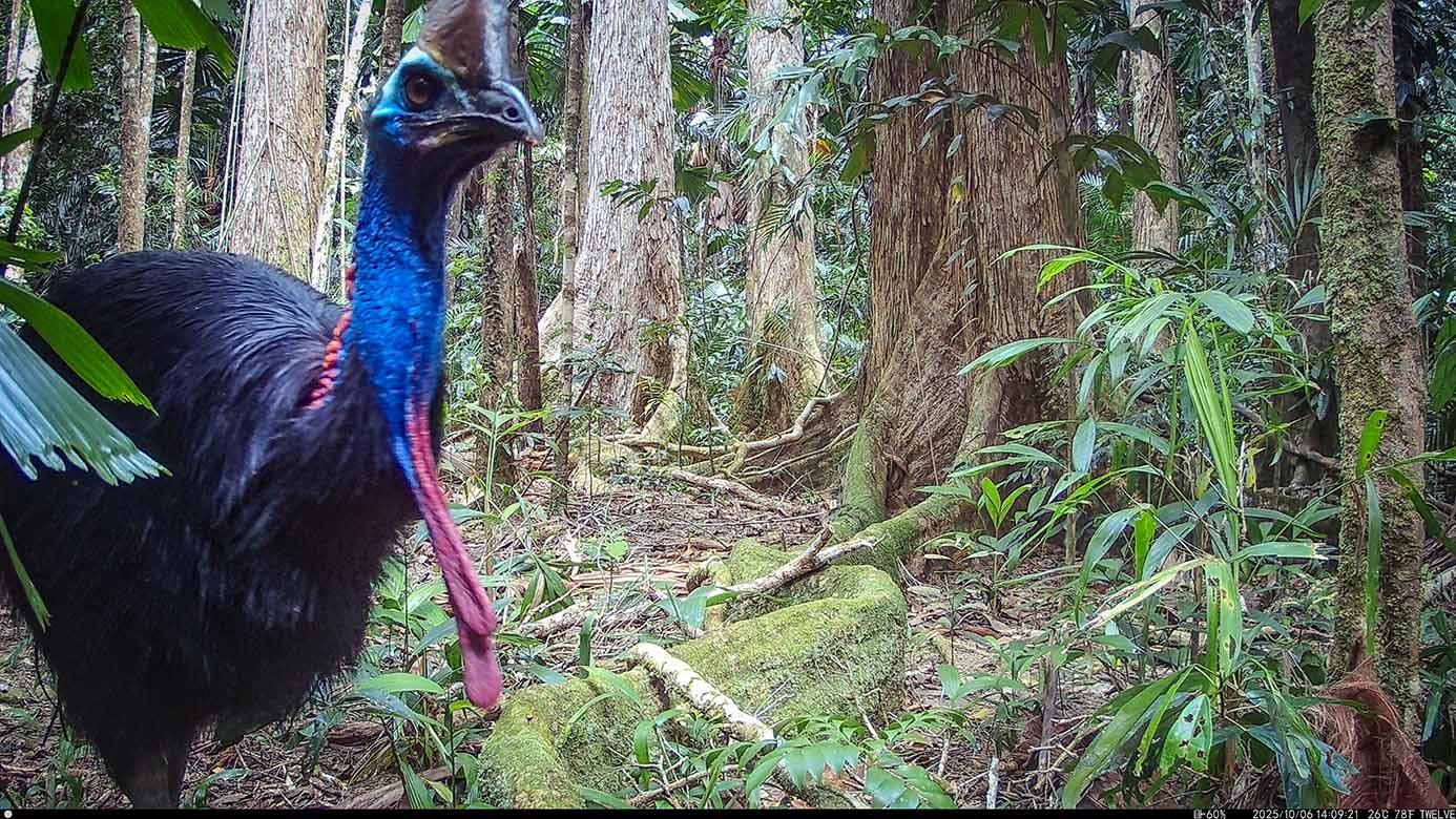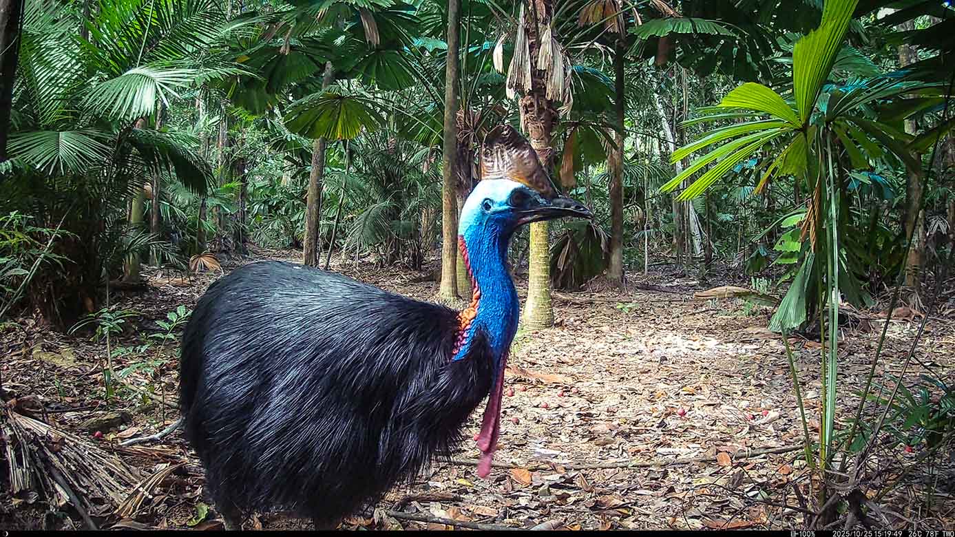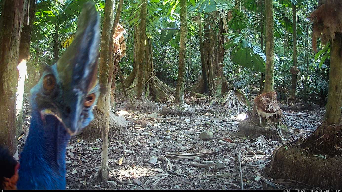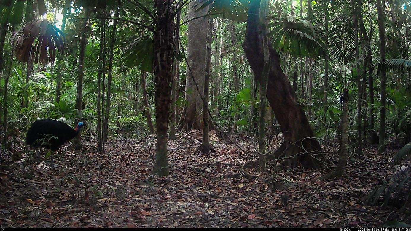 Camera Traps – October 2025 accrued 55-cassowaries, 43-dingoes and 56-feral pigs. Against the cumulative monthly average, cassowary numbers fell by 43%, dingo numbers increased by 2% and feral-pig numbers plummeted by 71%. Against October 2024, cassowary sightings rose by 104%, dingo numbers increased by 78% and feral-pig sightings decreased by 78%.